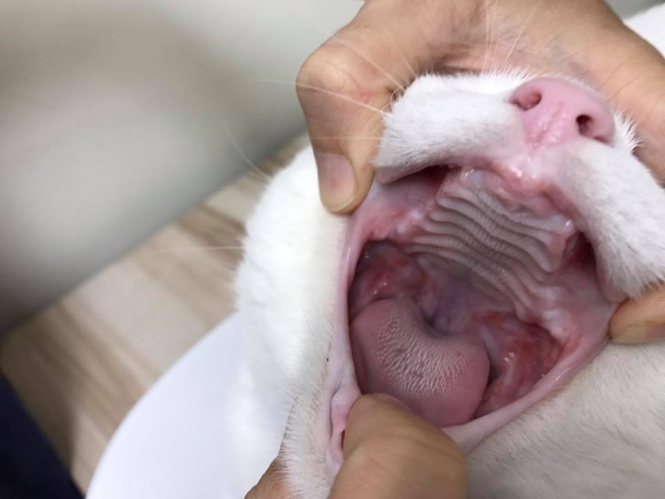 但回診幾次發現白居易整體狀況雖有進步,但口腔仍紅腫
