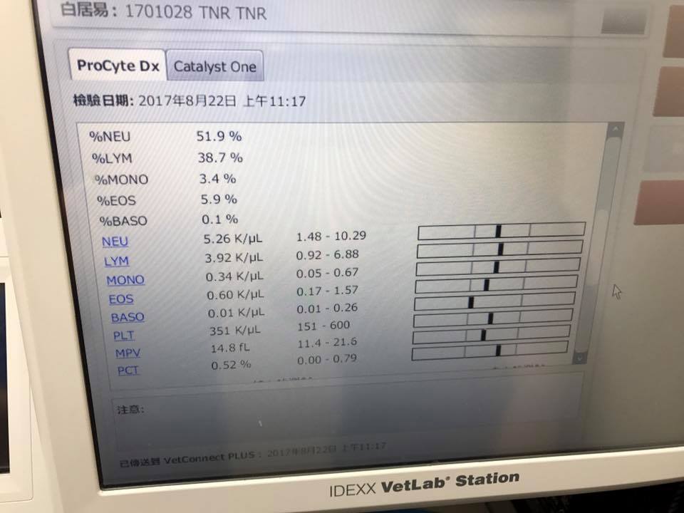 今日回診,血檢,各項指數都在正常值。牙齦部分後口退紅得還不錯,但犬齒還是有點紅,醫生施打長效類固醇,加強退紅