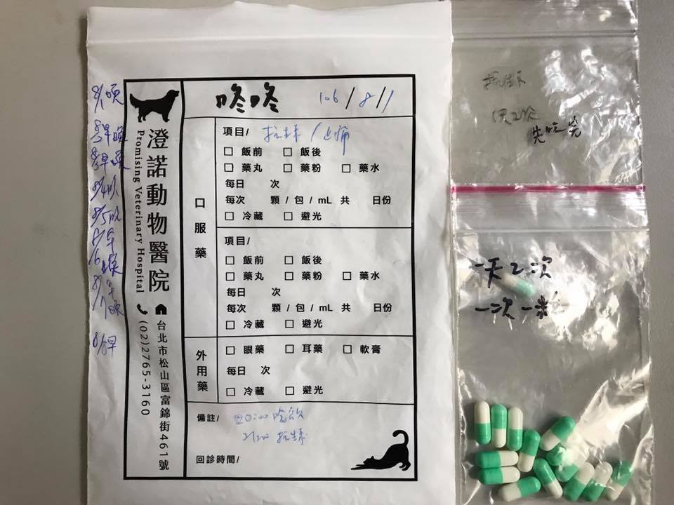 1.抗生素,一日二顆,早晚各一顆,舊藥吃完再吃新藥