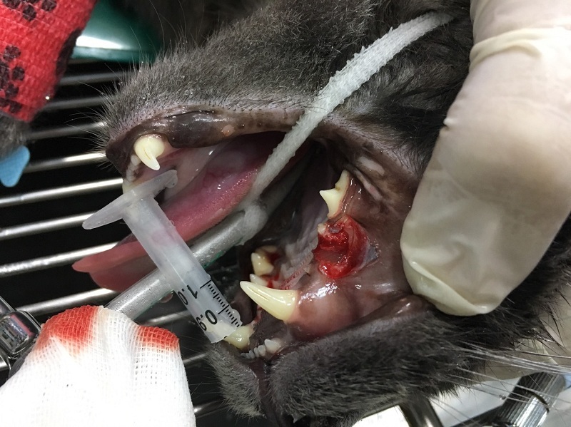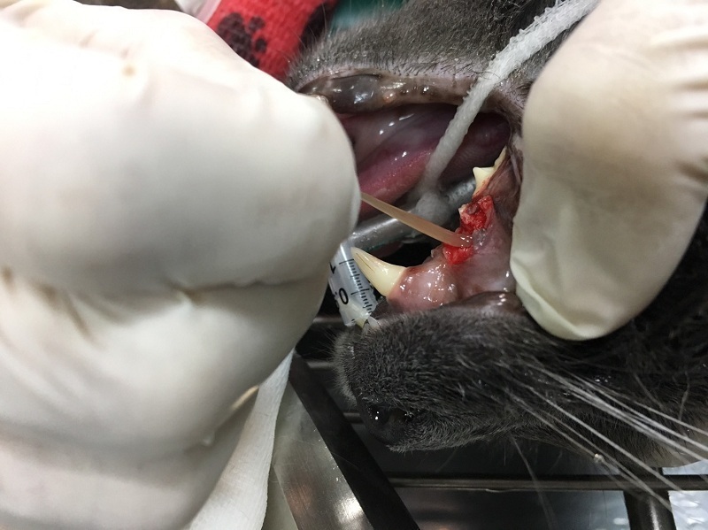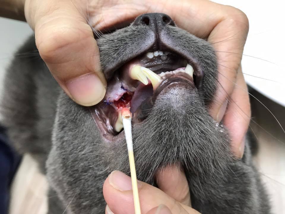因之前口炎做牙周治療跟拔牙手術回診檢查,發現之前手術縫合線斷掉,所以重新縫合