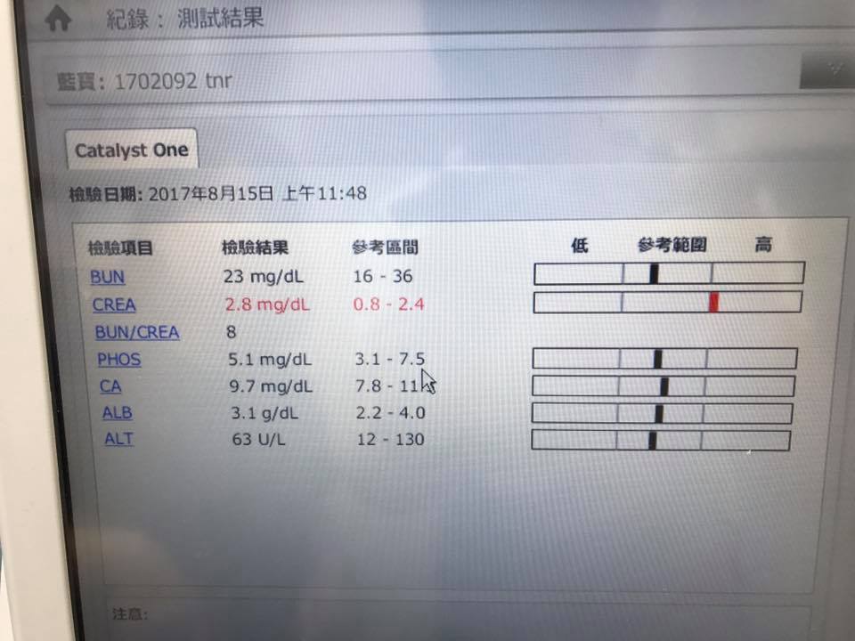 藍寶 5.37kg,嘴巴傷口癒合良好,體重有往下掉,要注意食慾,驗腎指數有高,因他不吃處方飼料,所以用藥物加強控制