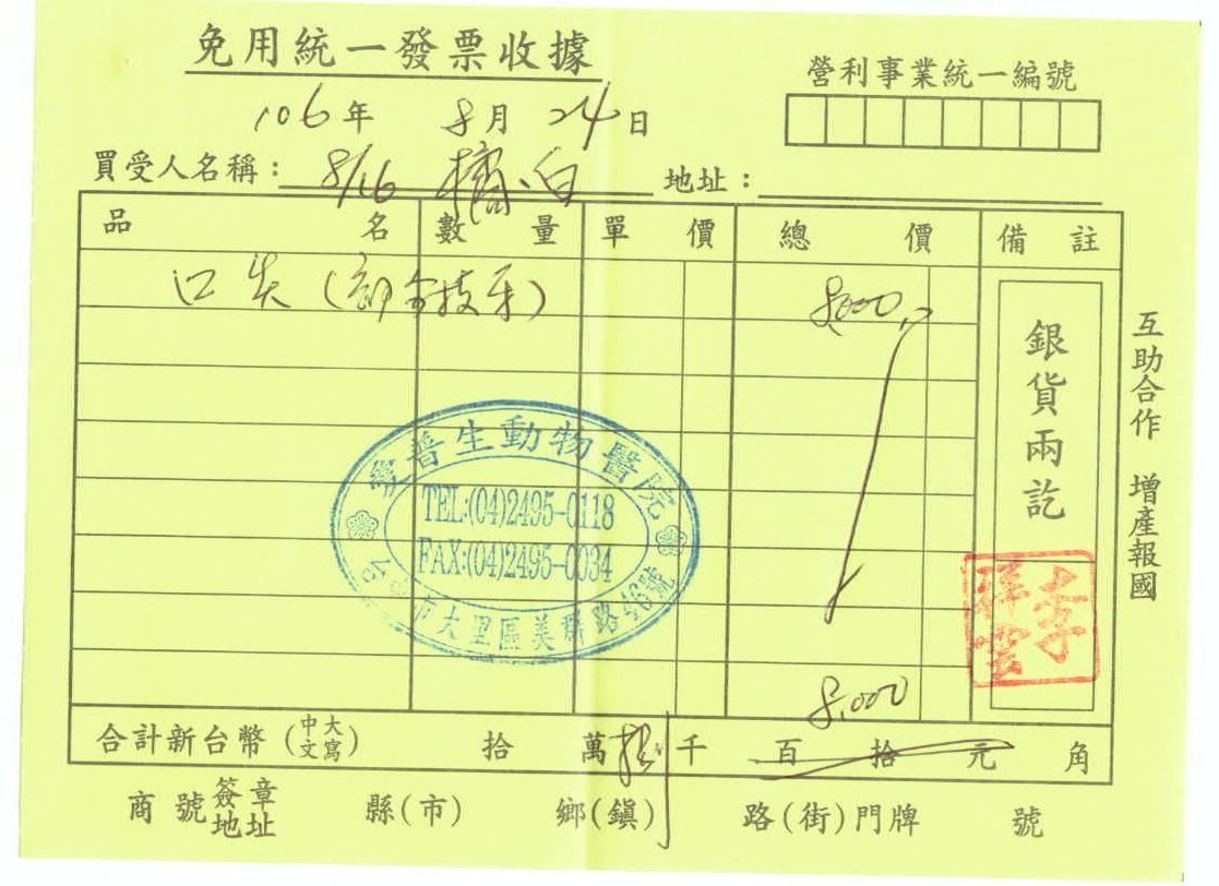 收據可抵稅請將地址mail至cashier@tnrtw.org0912940006763