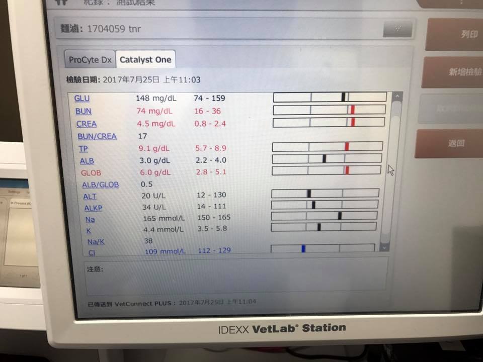 今天回診驗血,腎指數依舊偏高。