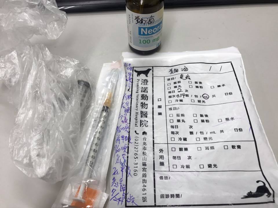 口服藥晚上2ml,免疫抑制劑照舊,倍補血照舊,下次回診看情況
