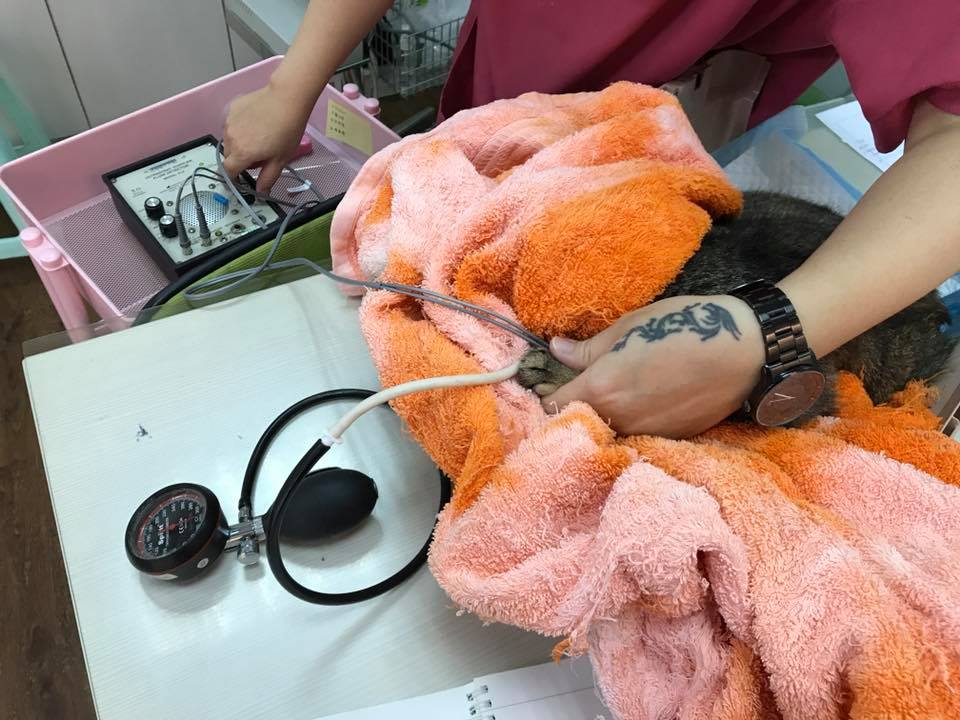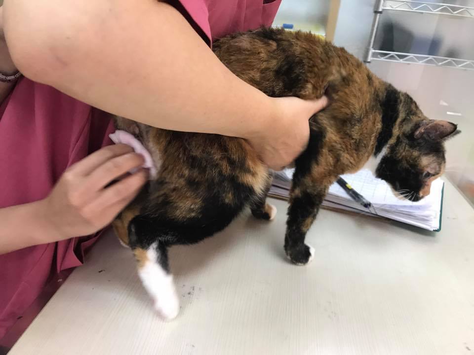 疑似肛門腺破裂,照護員反應碰到會尖叫,所以回診檢查