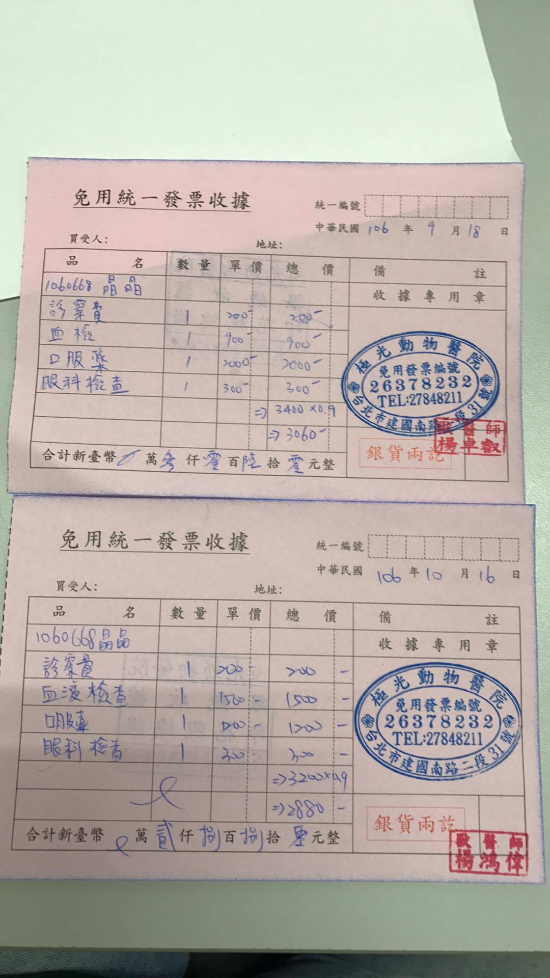 晶晶先服藥,抗生素,消炎藥,兩種眼藥水,先控制身體的發炎感染問題,一週後回診,血檢,再做後續治療安排。