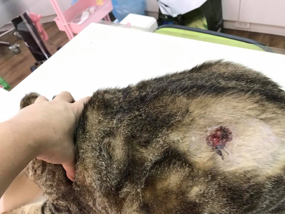 後進行清創、傷口縫合,因膿血已流出,