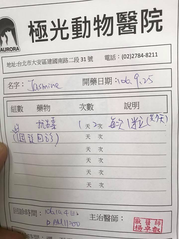 動物近況說明: Jasmine的傷口縫合處正持續好轉