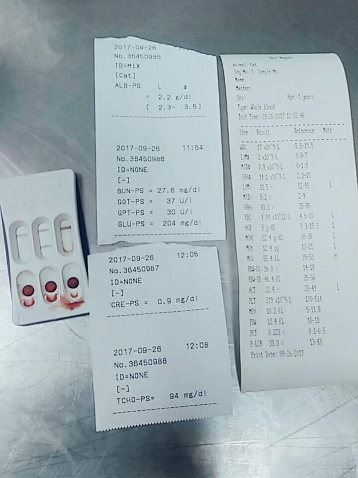 9/26誘捕入籠馬上送安華動物醫院,經醫生檢查確認應是被狗咬、血檢後確定貓愛滋、營養不良、貧血,其他部分沒問題。因為被咬的傷口有一些日子,傷口惡化需擴大清創縫合施打抗生素、點滴補充營養。另外做清創手術時會一併結紮。