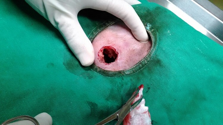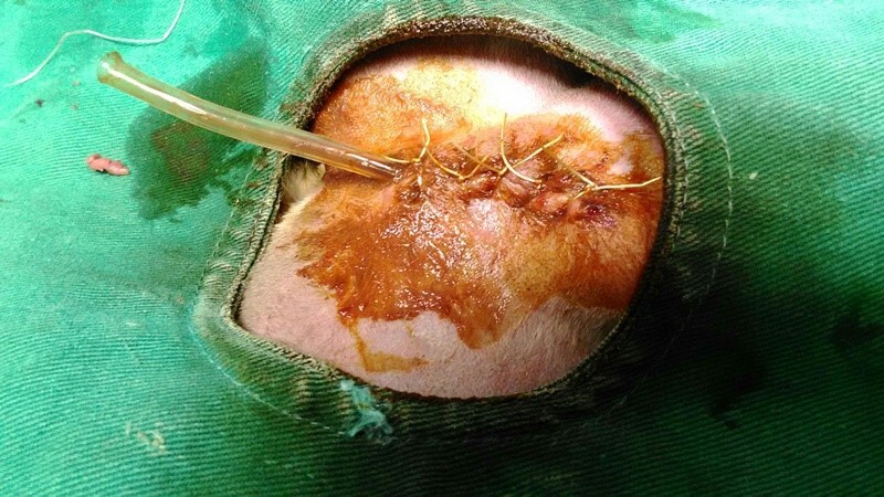 因為肚子疑似是被狗咬破,感染嚴重,蜂窩性組織炎