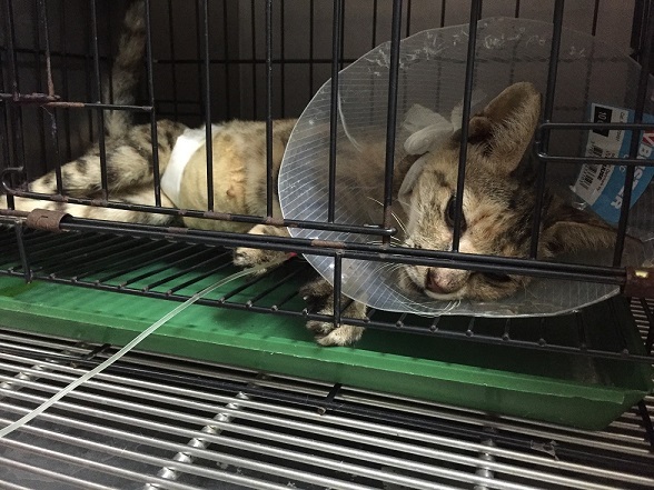醫生手術時感覺貓有黃疸、眼睛紅腫,驗血發現肝指數異常、白血球過高也脫水,需要住院治療,又因康康個性比較兇悍緊張,無法人工餵食,可能需裝鼻餵管,住院天數較長是因為黃疸治療需要有段時程之因動物近況說明: 10/4進院