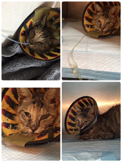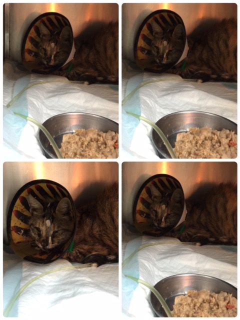 10/25放了不同種類的罐頭跟飼料還是沒啥吃,鼻膿鼻水聲越來越大,再度送醫,灌食不吞進去,一直吐出來,狀況不佳,只好留院上點滴治療