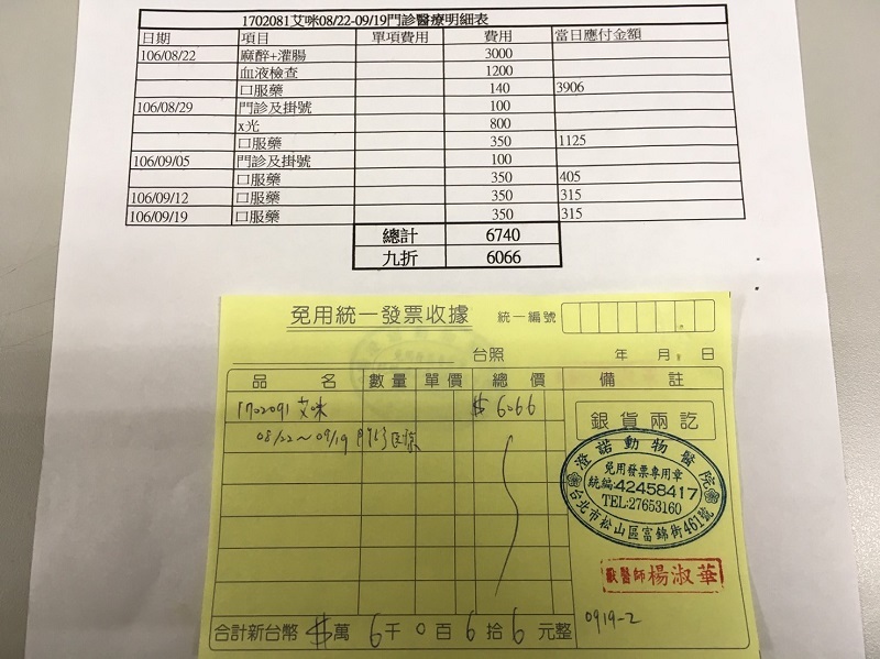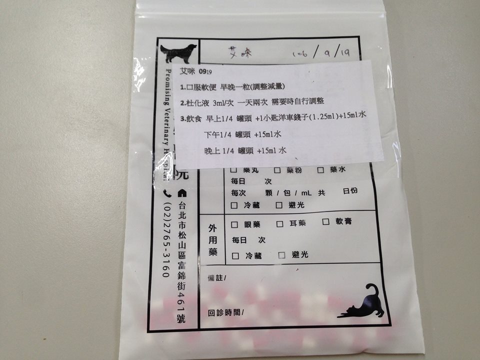 艾咪因便秘多天,暫留醫院,明日8/23中午接出