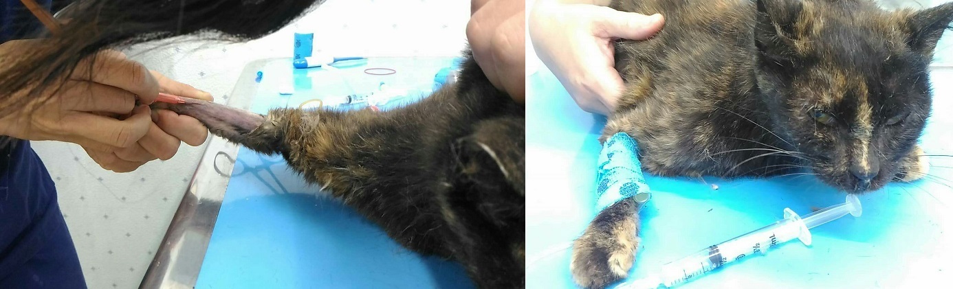 今早接獲院方來電 告知血容比下降至13 需要血貓 午後趕緊帶貓去配對捐血 因芽芽瘦小 所以需要捐50cc 醫生也有說 血容比突然降這麼多.快 可能要考慮有血液寄生蟲 芽芽有愛滋 但不知道是否有血巴東 所以稍等芽芽好轉許多時會抽血送實驗室檢驗 晚間又到院探視芽芽 因呼吸稍急 照x光發現肺葉異樣 芽芽開始住氧氣房