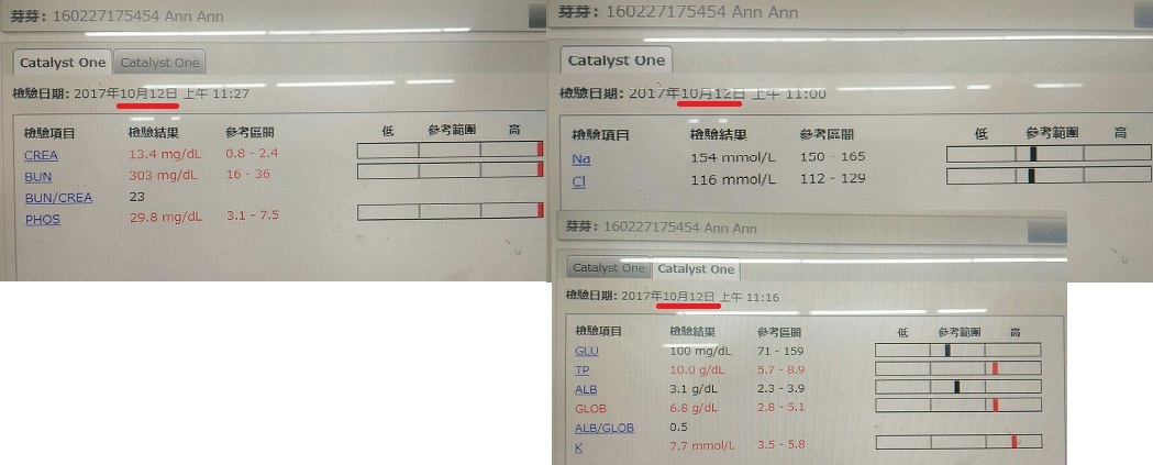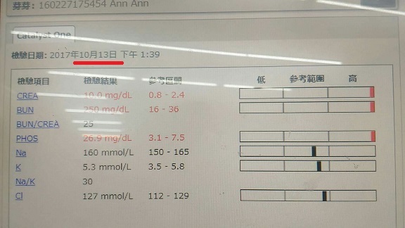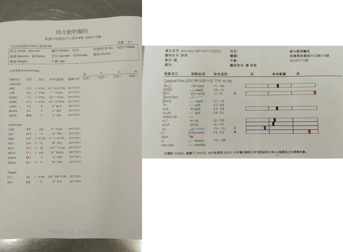 懇請協會及社會大眾幫幫忙動物近況說明: 10/12 到院看芽芽 指數還是超標 但是至少儀器可顯示數值了(自我安慰中)