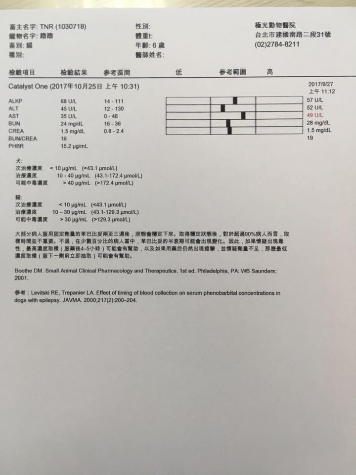 相較於9/27過高的肝指數AST(49),今日數值在標準範圍內(35)