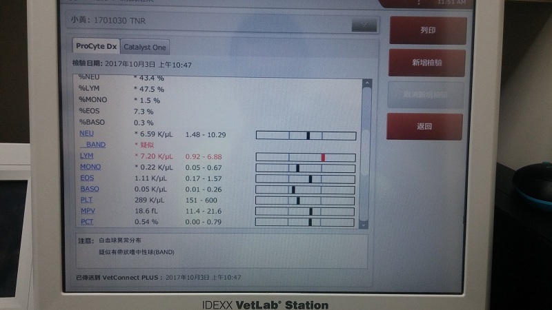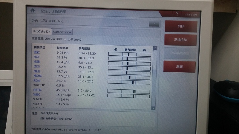 這禮拜回診拆線,掃超音波狀況良好,血檢白血球有點高,口服藥繼續吃,因他不愛吃東西,所以裡面有家食慾促進,腎指數有點偏高,所以要先打皮下控制