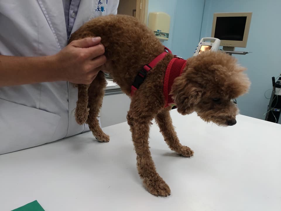 葳葳瘦弱,患有心絲蟲,爛牙,腳畸形,並且在檢查過程中發現身上有多處腫塊