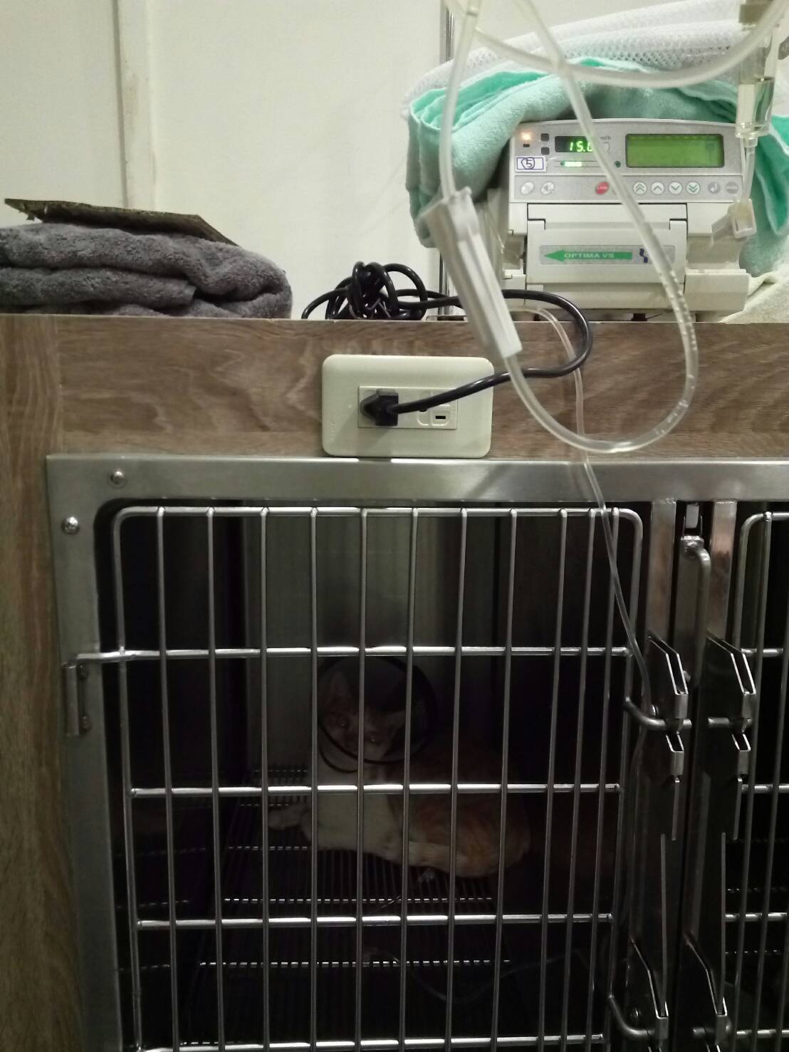 住院期間,小橘因為身體虛弱的關係,一直沒有食慾無法自行進食,於是一直在醫院補充點滴輸液,直到11/22才出院。動物近況說明: 小橘目前回到喵喵茶休養,因為身體虛弱的他已經不適合野放,秀雲姐雖然貓口眾多己經無力負擔,但還是決定讓小橘留在喵喵茶!!