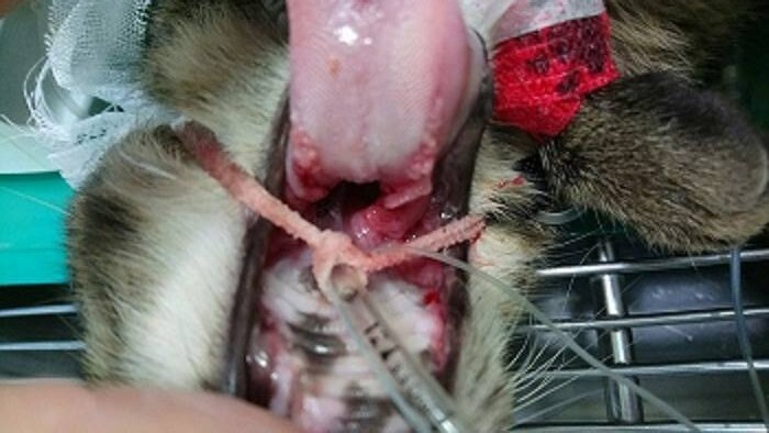動物近況說明: 由於齒根拔除後,後口發炎的情況仍為有較明顯的改善
