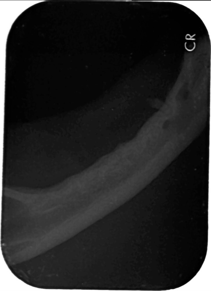 只發現下顎雙側各一齒根(如同門診可觸摸處)