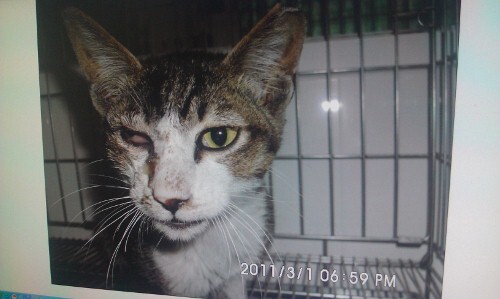 主題: 大林蒲 眼睛感染 鼻氣管炎 的營養不良貓咪 申請者姓名: 劉雅雲 花色: 申請日期: 2012-03-12 23:15:55 申請者部落格: 申請者臉書網址: 所在縣市/合作醫院: 高雄市/樂生動物醫院 治療費用: 4200元 需求人數: 5人 已結案 (2012-03-20 08:47:33) 報名人員: Afra Liao(已付款)、nicole chen(已付款)、Chiao Yun Yu(已付款)、Becca Huang(已付款)、Grace Chang(已付款)、 候補人員: 動物病情說明: 這是眼睛感染 鼻氣管炎 的營養不良貓咪, 抵抗力非常不好, 在醫院兩週的治療下已經恢復, 食慾很好, 會請檳榔攤餵食的阿桑和女兒繼續給他們餵飽飽, 吃壯一點會比較健康