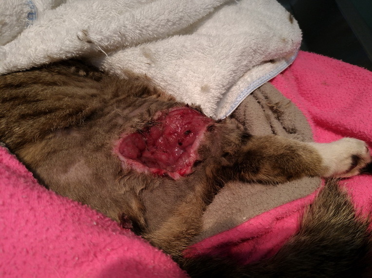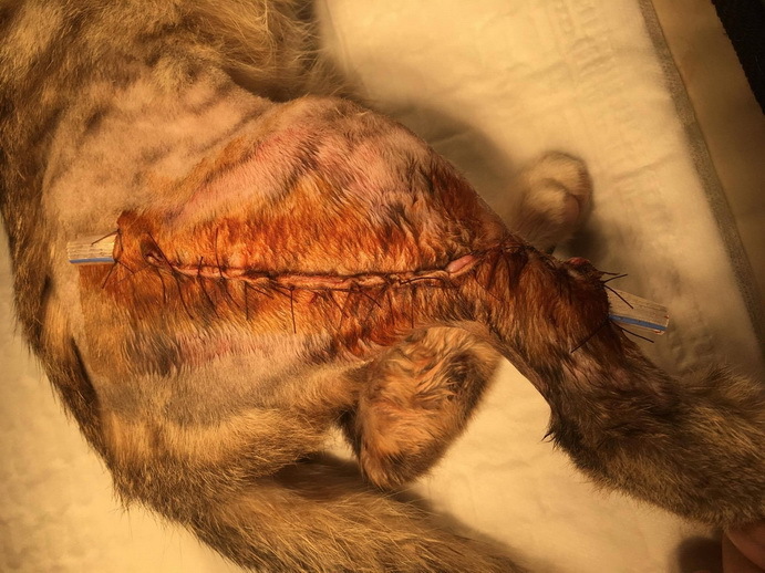 右後腳外側有大傷口,左後腳內側小傷口