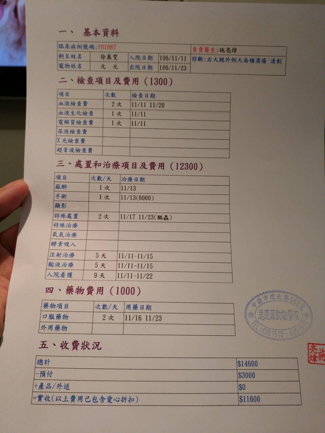 傷貓已於11/23晚上出院