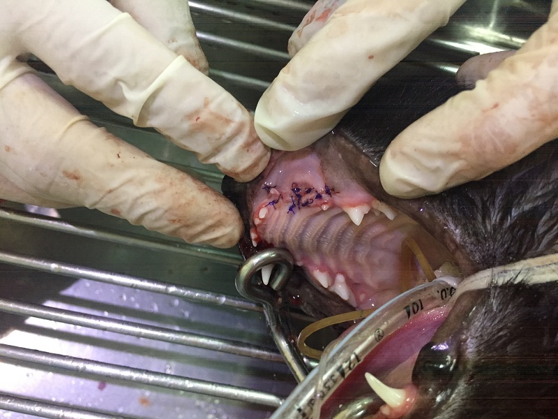 但接近咬合處的縫線疑似因進食有稍微拉扯,