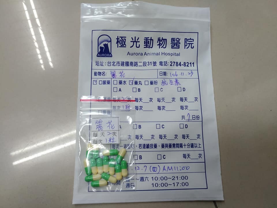醫生開一週的藥,兩週後回診,明日開始餵藥