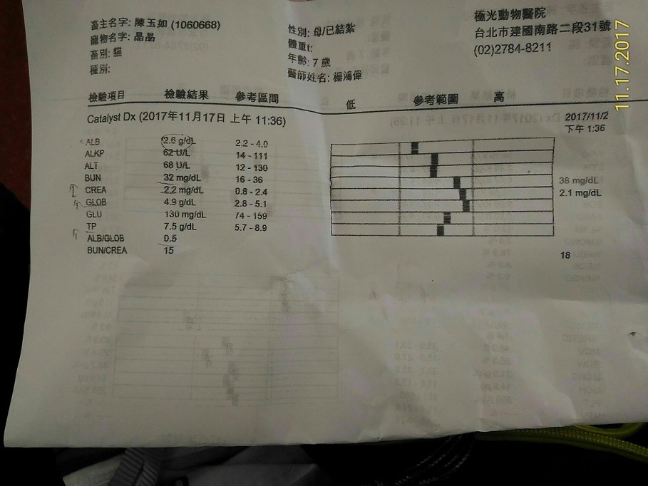 生化指數都在正常值內, BUN 32/ CRE 2.2