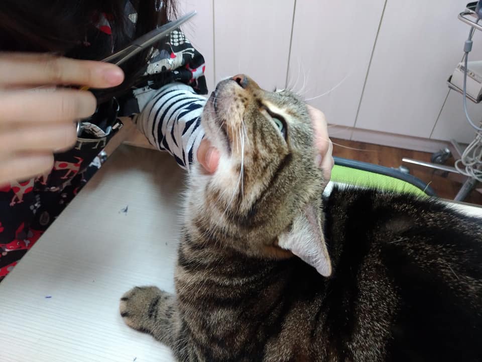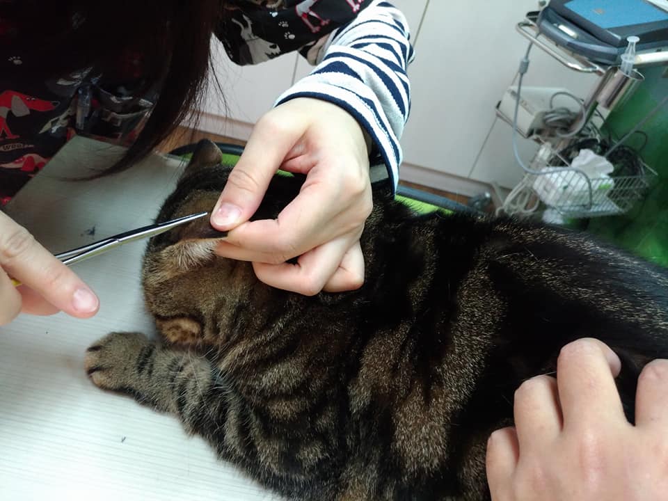 醫師覺得,踏踏的嘴週遭脫毛變嚴重,耳朵也有一些禿毛,拔毛檢驗,沒有異常,猜測可能是近期換食物過敏。醫師先開抗組織胺,如果範圍沒有擴大或持平皆不用回診。