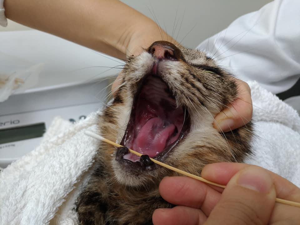 盈盈口腔狀況不是很好,有紅、口水帶黃黃的,有鼻膿,加開抗生素及少量類固醇,