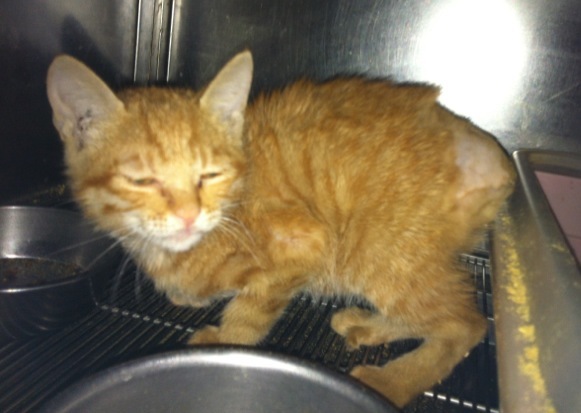 主題: 車禍截尾又爆貓瘟小橘貓,需要您送牠最後一程 申請者姓名: 蔡孟潔 花色: 申請日期: 2012-08-22 16:45:22 申請者部落格: http://www.facebook.com/mengjiec2 申請者臉書網址: http://www.facebook.com/media/set/?set=a.472550629431447.112786.100000295417084&type=1 所在縣市/合作醫院: 花蓮縣/建國動物診所 治療費用: 2150元 需求人數: 10人 已結案 (2013-06-27 13:27:49) 報名人員: Bei Bei Wang(已付款)、Hope Liao(已付款)、Chinia(已付款)、陳阿妹(已付款)、Lorelei Tsai(已付款)、Lorelei Tsai、Lorelei Tsai、小恩、Agatha、amychen(已付款)、julie lee(已付款)、meemee(已付款)、meemee(已付款)、小舟、美珍沈(已付款)、 候補人員: 小舟、 動物病情說明: 8/3 R貓時發現二隻被棄養的小貓(暹邏、橘子),其中一隻橘貓尾巴沒有反應,疑似斷掉,剛醫師說小貓是車禍,診斷後需截掉尾巴,脊椎有斷裂需照x光