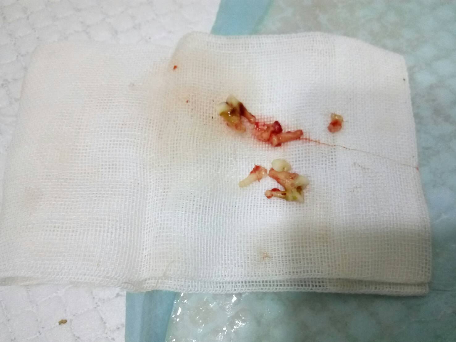 因口腔潰爛而必需拔牙。日後的幾個禮拜也必需吃藥。但完全不影響食慾喔。每次放飯都會先吵著要吃(護士小姐說的)。很開心這孩子能這麼努力的想要趕快健康起來。