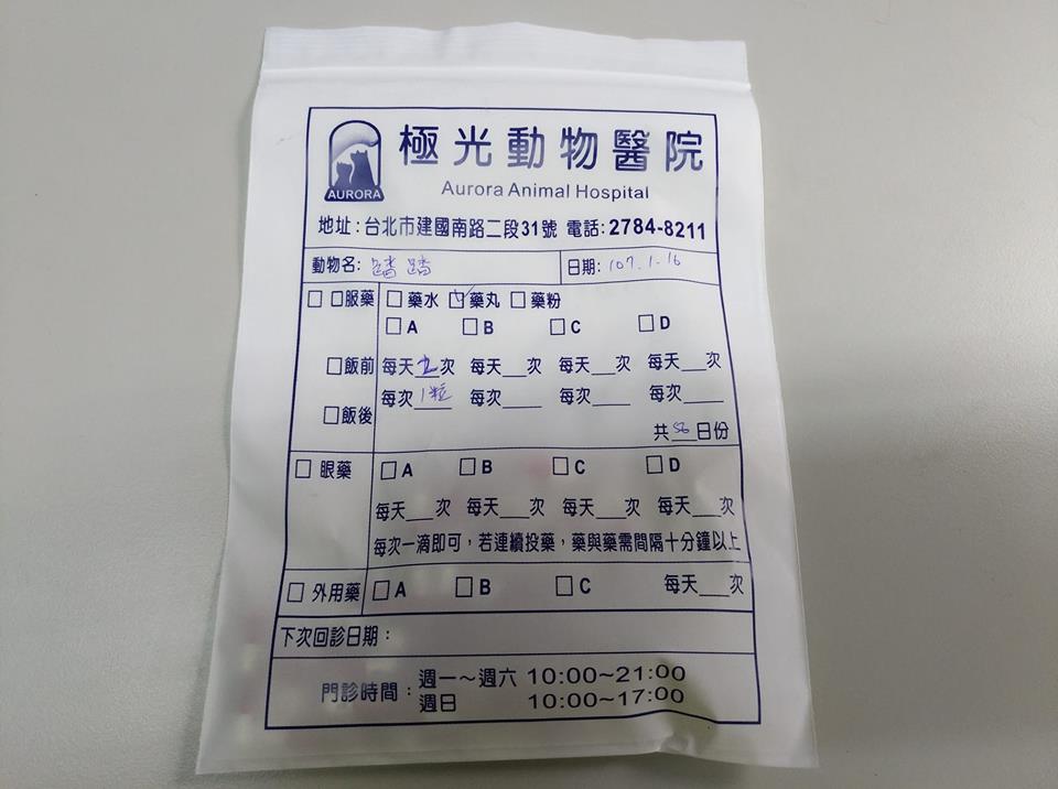 來到安養之家的踏踏,除了需要每日定時服藥外,也需定期至醫院檢查