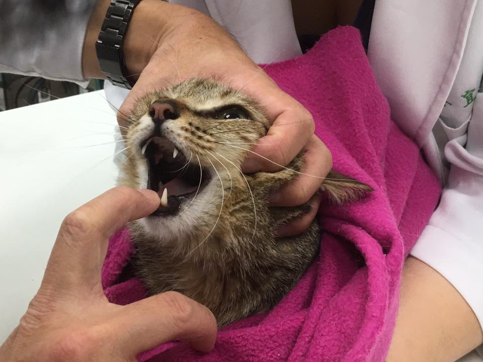 檢查發現小葵口炎嚴重,前小牙都已鬆動,犬齒牙齦痿縮