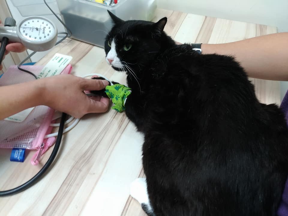 麵滷的腎指數又來到另一個新高點,在醫院精神狀況沒有不同,但指數一直攀高,鉀離子也居高不下,如果鉀離子一直高下去,心跳就會越來越慢,可能在睡夢中就這樣離開。由於腎處方飼料裡面有補鉀,所以醫師現階段想試看看室內老貓的飼料的效果
