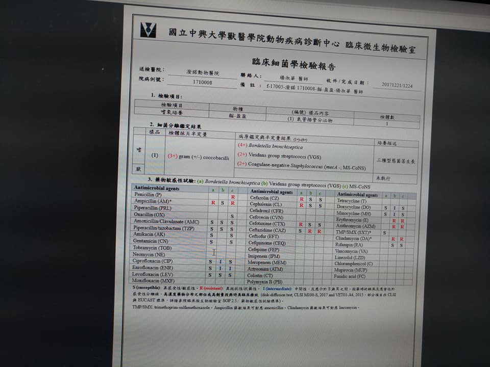 而血液檢查有肝指數上升與貧血之症狀,並合併呼吸道感染狀況,身體十分耗弱。