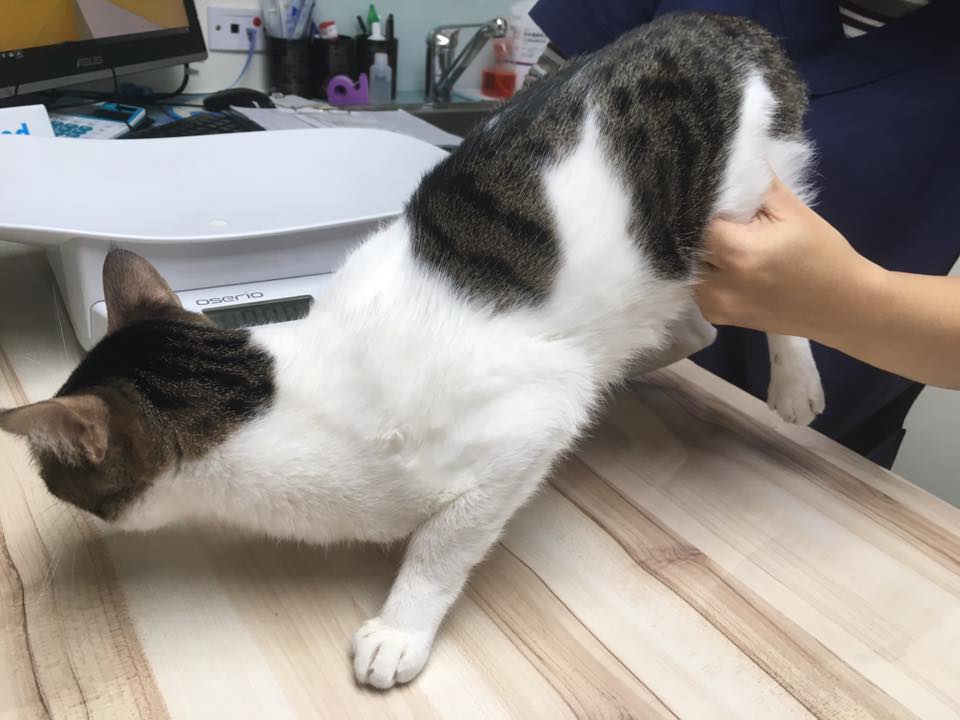 艾咪腸道內的大便非常硬,導致無法排出,今日留院,待明日接回。