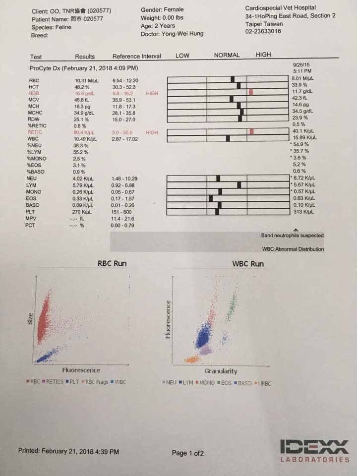 血檢部分,血紅素稍高,喝水量不足,希望可再加強喝水