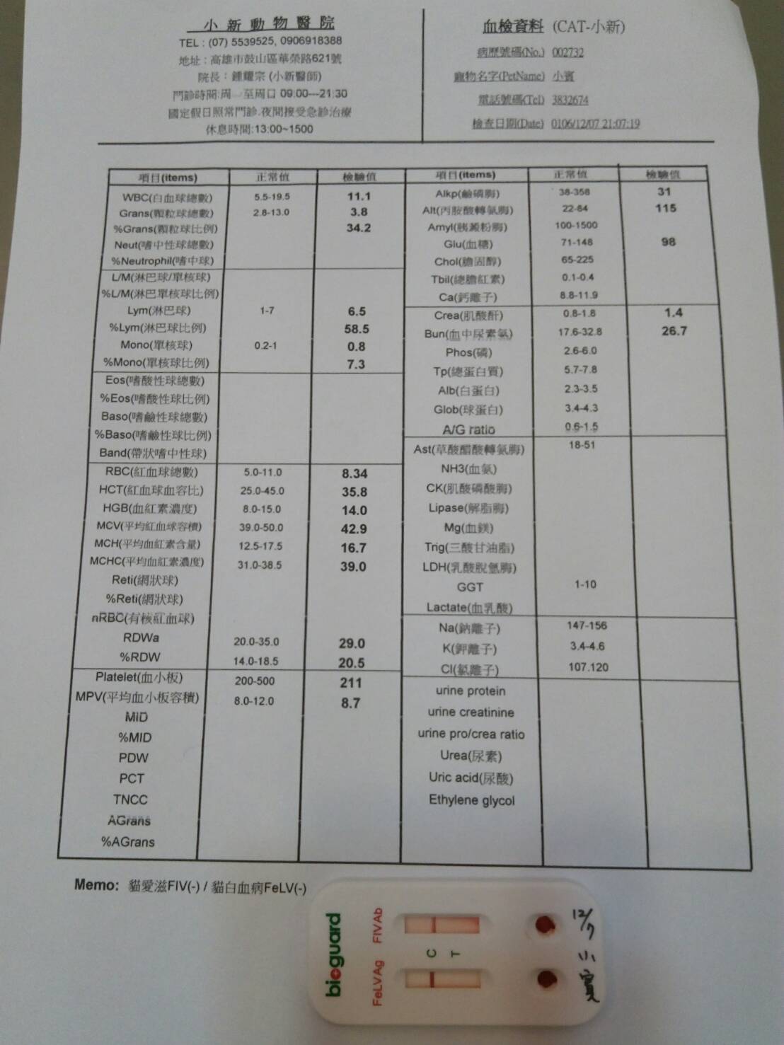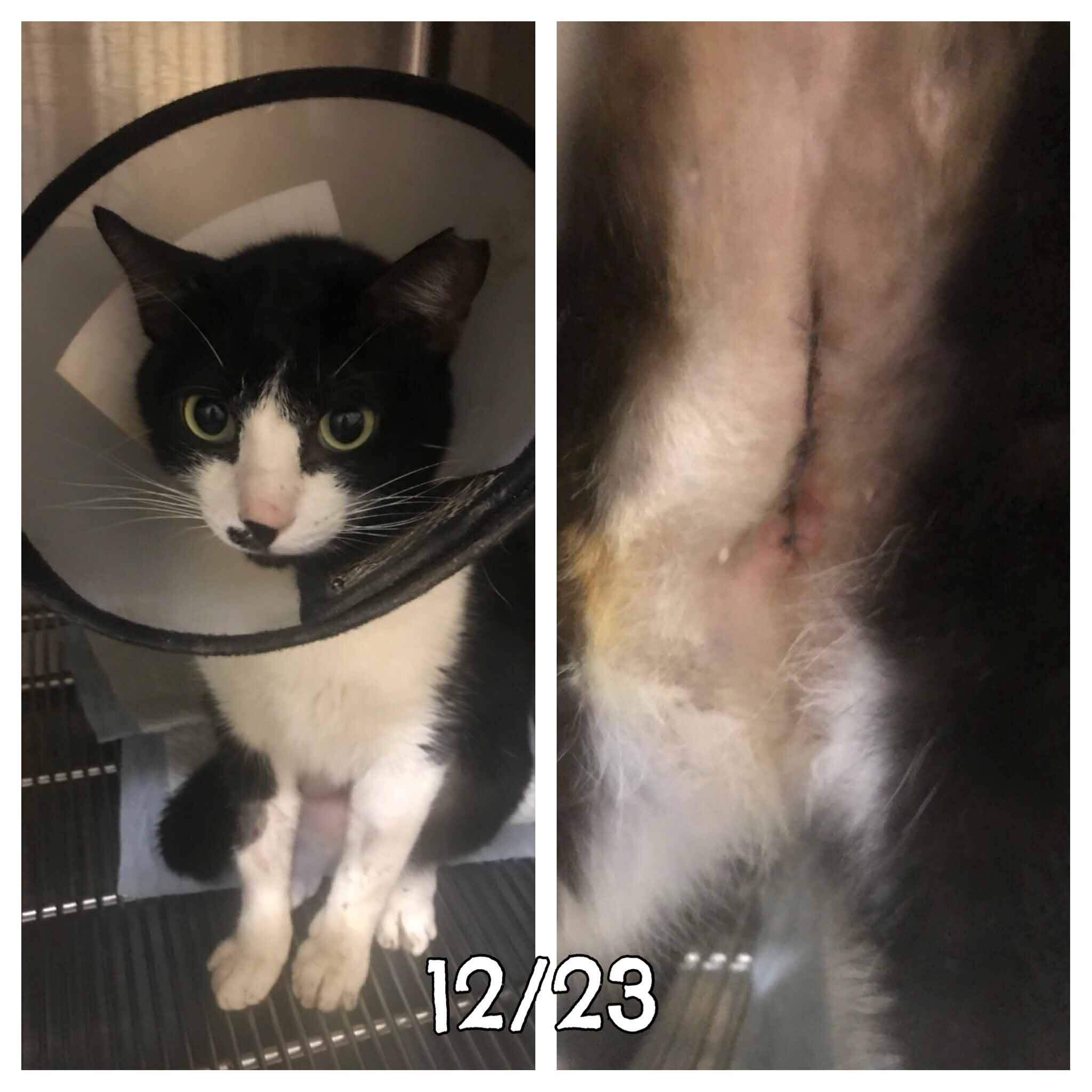 12/14,醫生說目前除了食慾沒有很好外(吃不多),傷口與精神狀況都不錯(一直想趁機會逃脫),如沒有突發狀況可以如期出院,但必須吃幾天藥,回去觀察有正常大小便後才能原放。