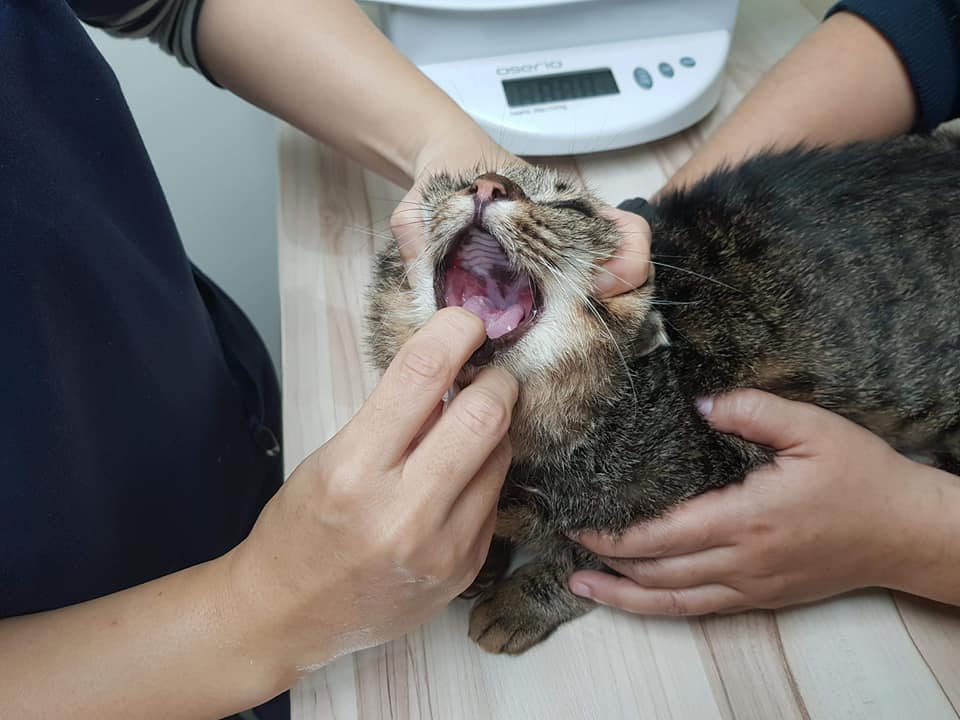 體重緩慢上升。從體重看起來,是確定有吃東西,嘴巴狀況持平,舌頭上面的傷口沒縮小也沒擴大。
