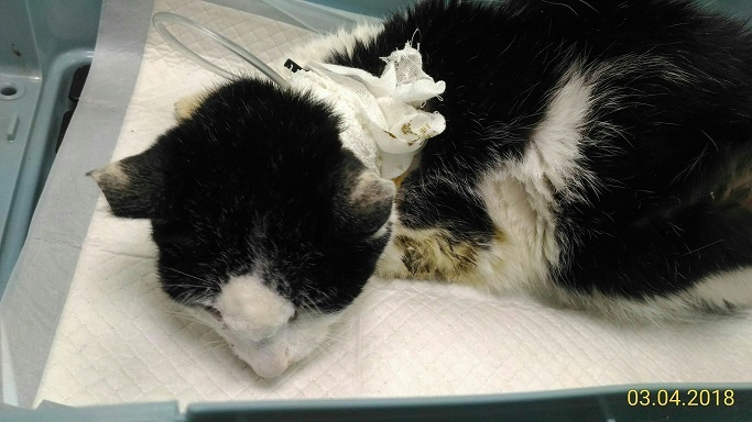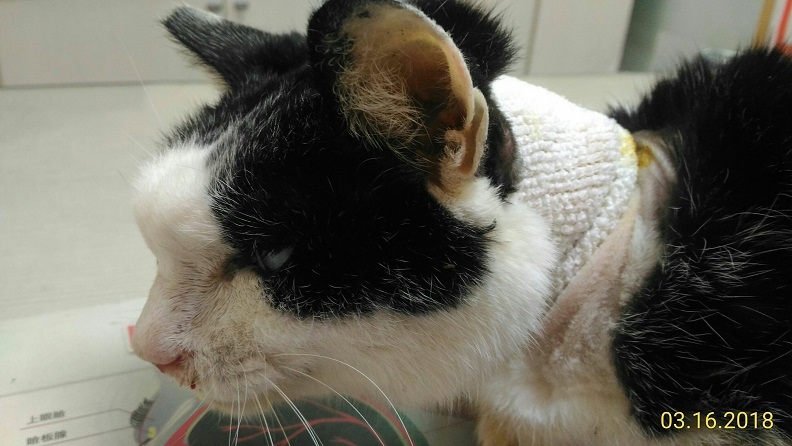 貓咪目前仍然不願自主吃喝, 但精神狀況還不錯. 希望在貓咪健康狀態不會太虛弱前, 安裝食道胃管, 維持營養熱量的攝取, 才有體力面對未來的治療.