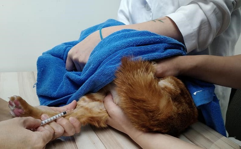 醫生說可能的話,每天可以使用生理食鹽水沖洗一下紋貍的右眼內分泌物,並用乾淨紗布輕輕擦拭.