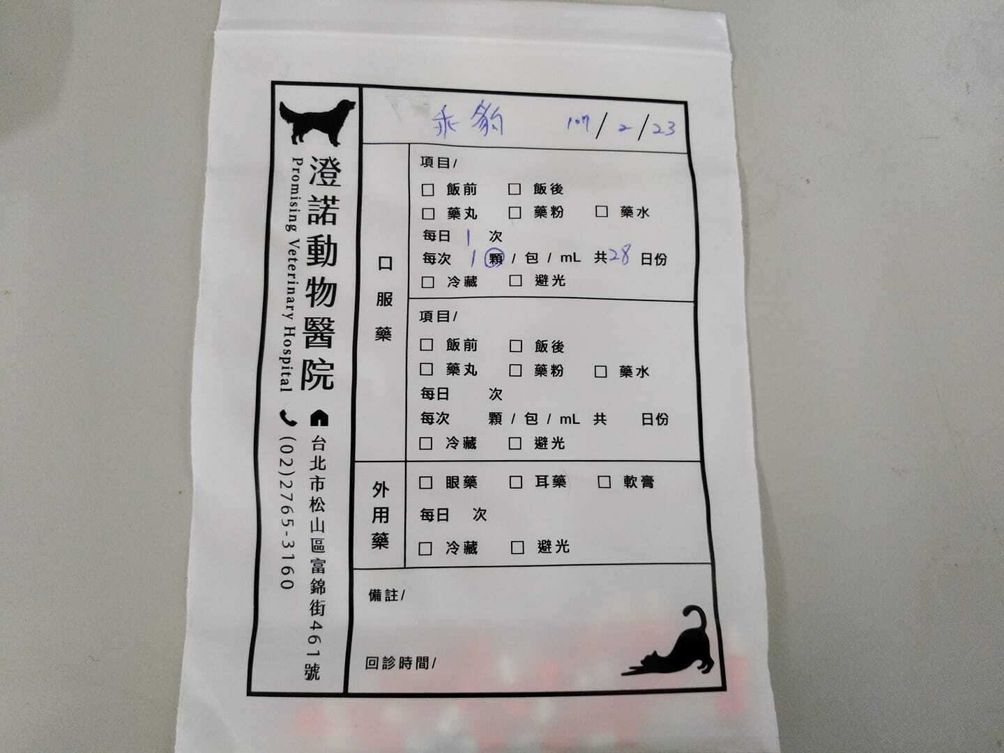 《早》《晚》各一次,每次一顆,飯後吃,服藥後請餵3ml水。