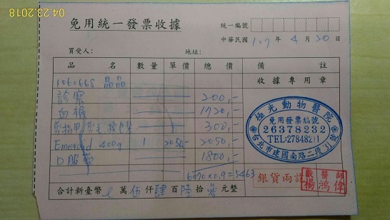 醫生幫貓咪餵管傷口換包紮 , 並進行清理剃毛時, 發現左乳頭有乳腺炎,輕微的瘀腫,剛救援時是右邊的, 需再觀察. 下次回診, 會安排進行更換新的食道胃管.