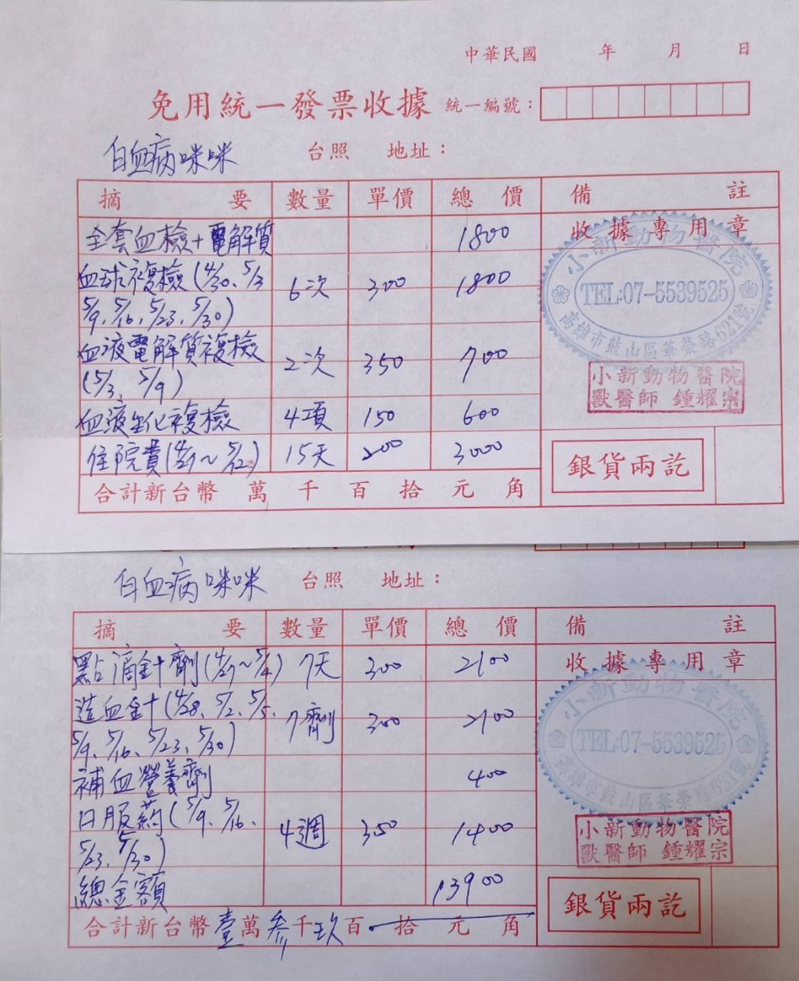 但若是貧血狀況還是沒有改善,咪咪就需要輸血治療,費用可能需要2~3萬元...