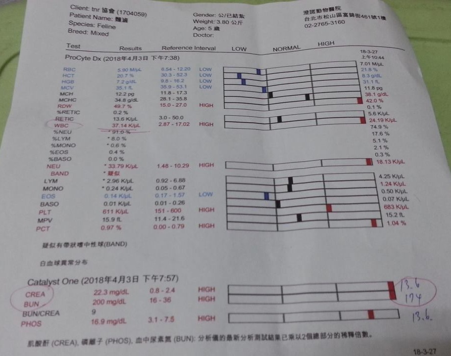 有脫水現象,血檢報告的Crea有變好,但醫生認為對照脫水現象,Crea有變好是麵滷進食量變少的原故。