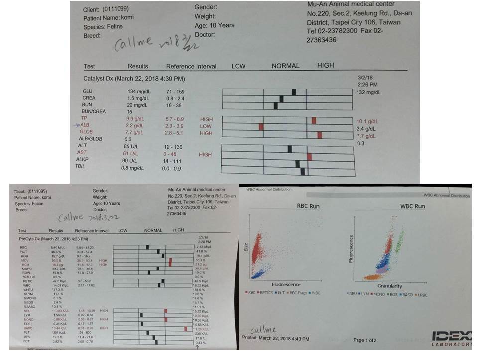 因這次血檢指數較不好,所以請密切注意精神狀況及飲食變化,有發生異樣就立刻約診,